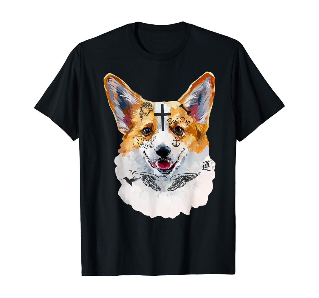 Amazon Com Rap Music Tattoo I Love My Corgi Dog Face T Shirt Clothing Shoes Jewelry